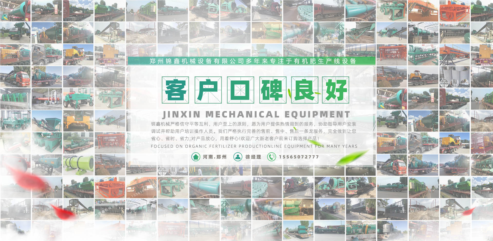鄭州錦鑫機械設備有限公司,位于機械之鄉(xiāng)的河南省滎陽市,它交通便利,連霍高速公路、鄭州西南繞城高速、隴海鐵路、鄭西客運專線貫穿全境,南水北調、西氣東輸在這里交匯。 公司有技術團隊為企業(yè)生產肥料加工設備,有的合作伙伴,科學、規(guī)范的客戶培訓體系;還有積極健康的企業(yè)文化,不斷創(chuàng)新的管理體制和經營模式和日益完備的經銷網絡。它交通便利,310國道、連霍高速公路、鄭州西南繞城高速、隴海鐵路、鄭西客運專線貫穿全境,南水北調、西氣東輸在這里交匯。 鄭州錦鑫機械設備有限公司是生產有機肥設備機械的企業(yè),產品:有機肥設備,有機肥造粒機,復合肥設備,復合肥造粒機,新型有機肥攪齒造粒機,對輥擠壓造粒機,有機肥生產線,有機肥加工設備,復合肥生產設備,有機肥造粒設備,雞糞烘干機,轉鼓造粒機,bb肥設備等遠銷各地,品質深受肯定! ...